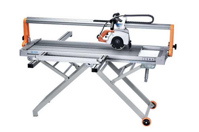 1、切割刀組在石料輸送臺上部并置于機架上,切割刀組之間固定定位導板;切割刀組由電動機、皮帶、刀輪軸、切割刀具組成,切割刀具固定在刀輪軸上